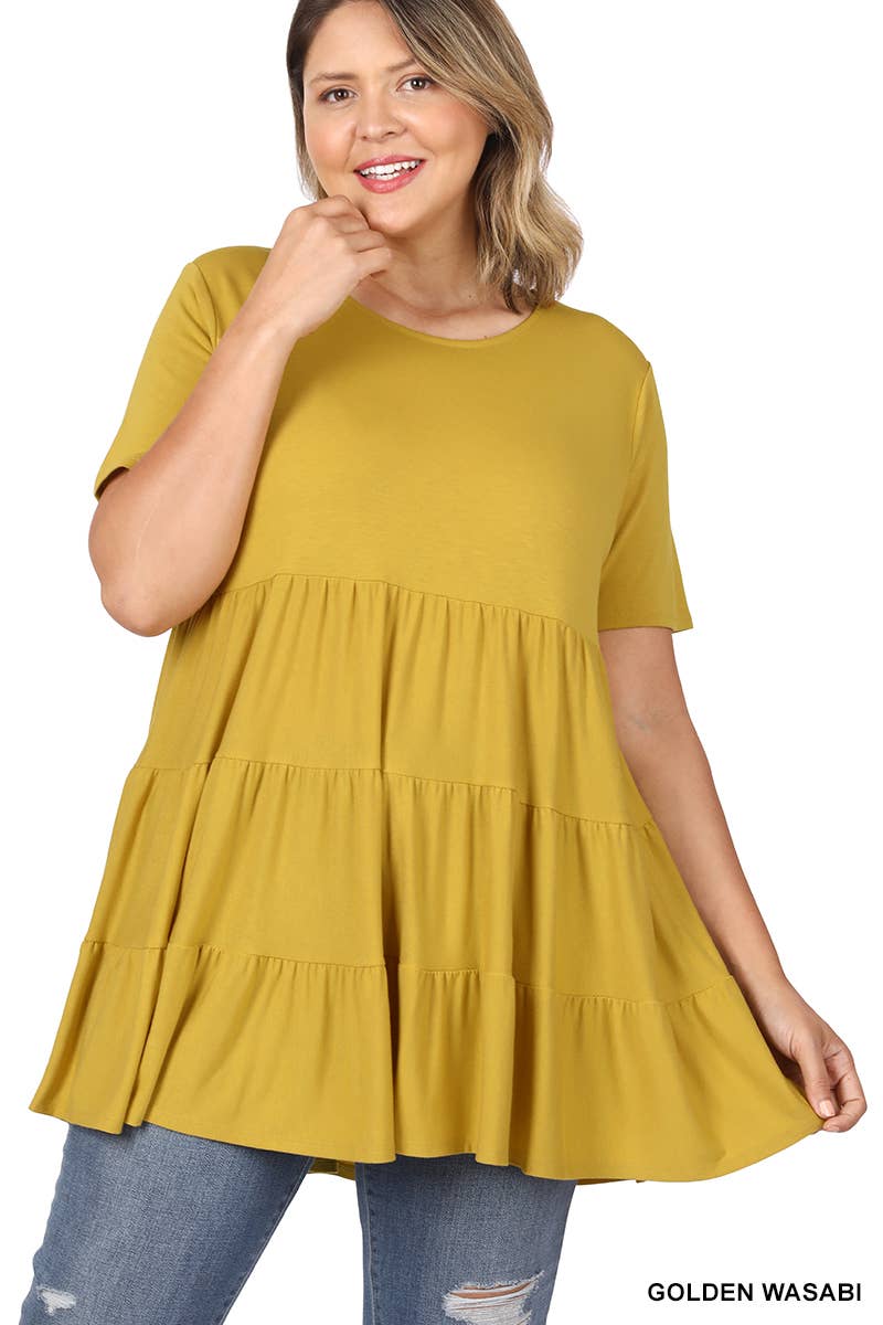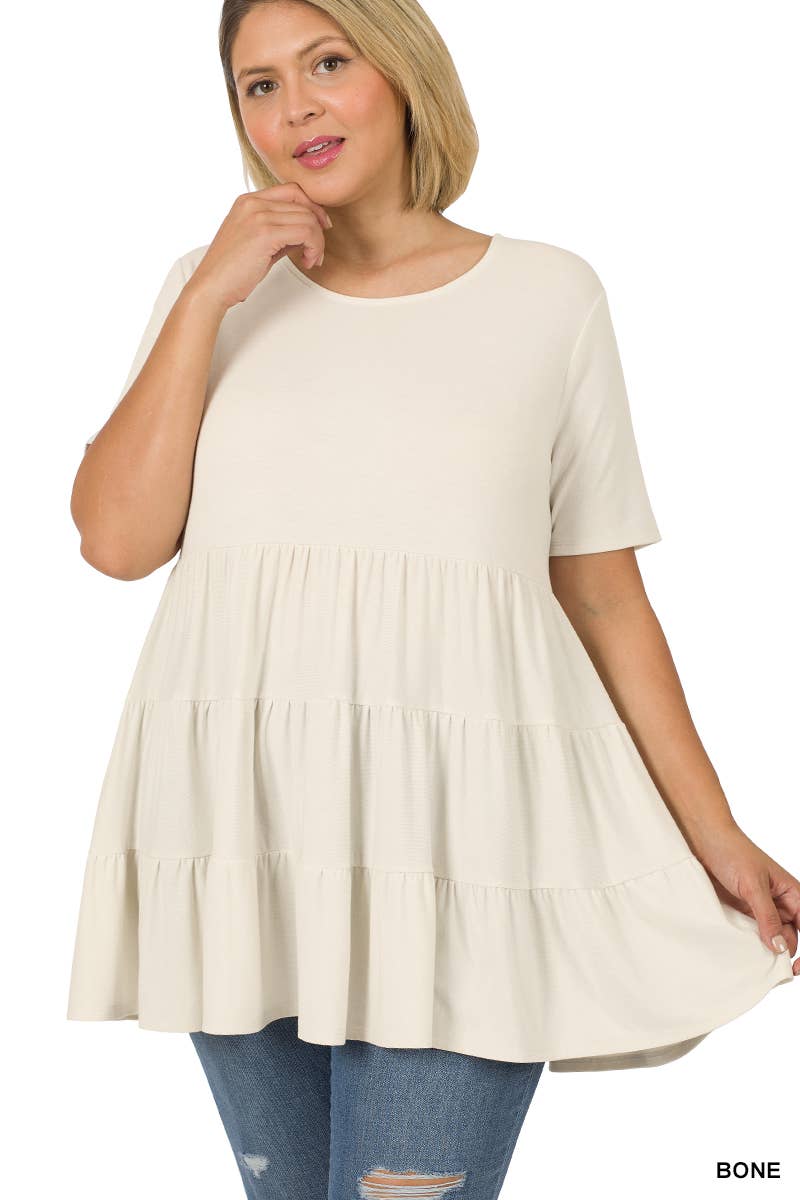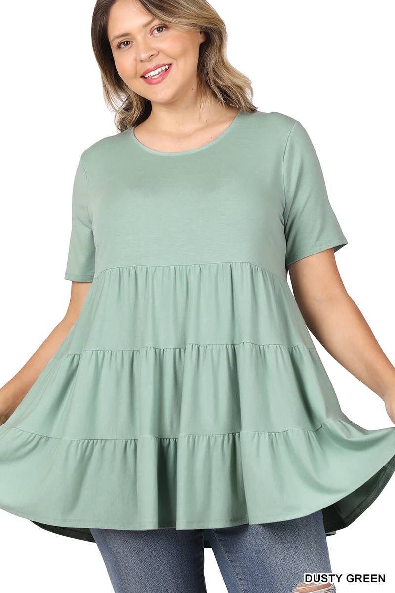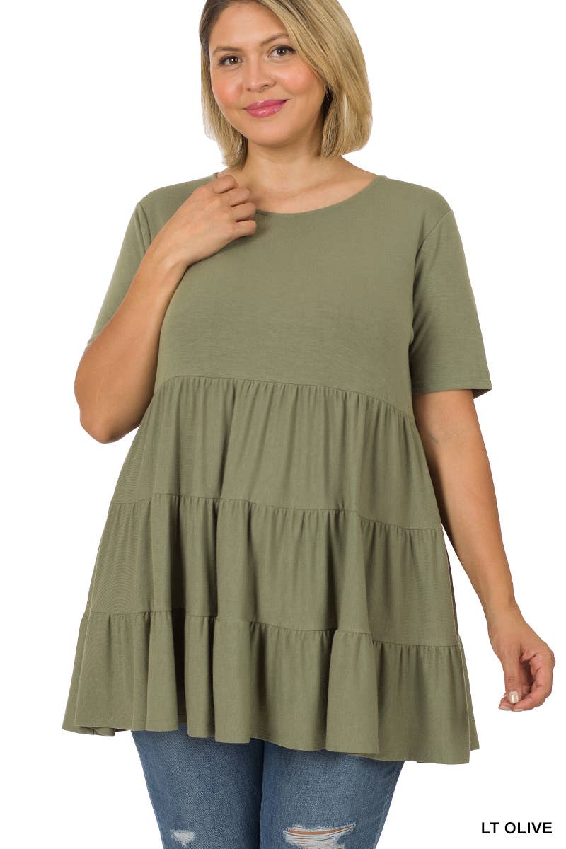 Ash Mocha Plus Short Sleeve Tiered Ruffle Tunic
