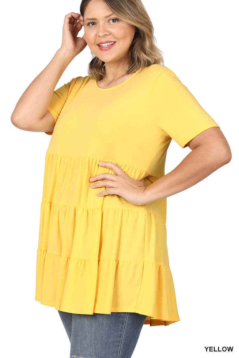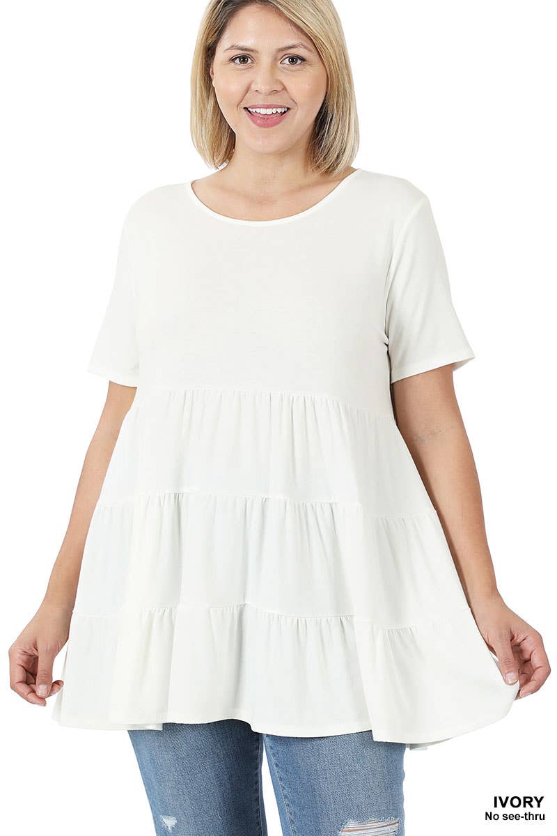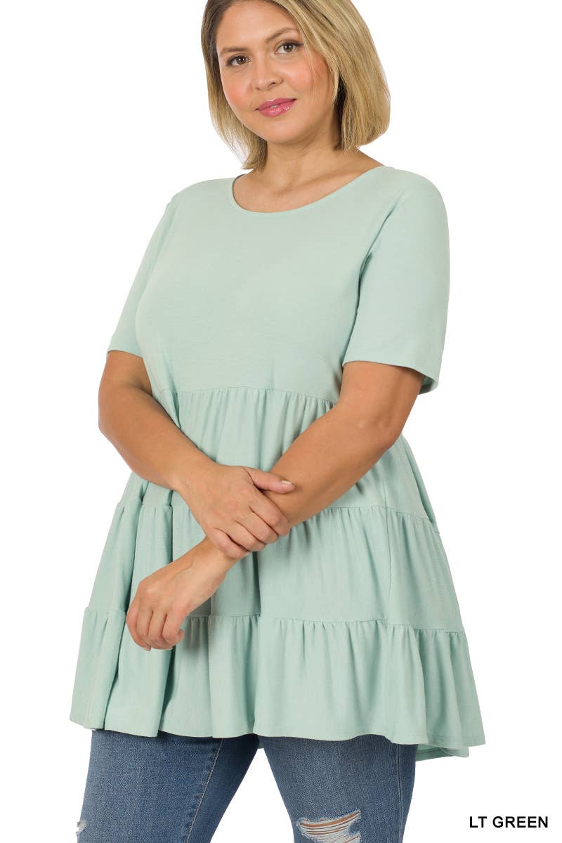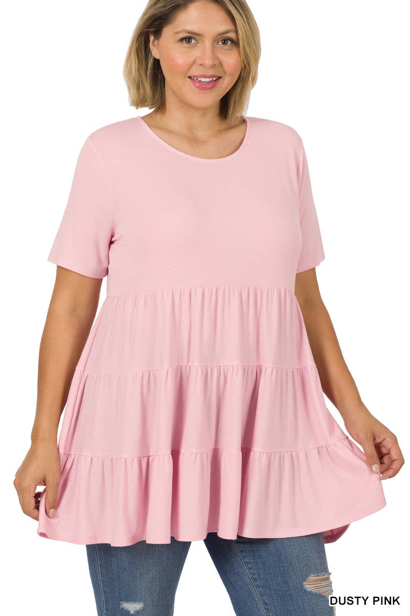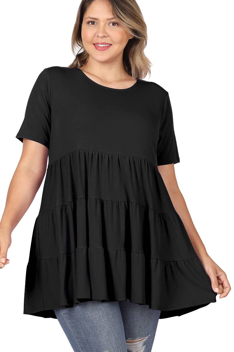 Ash Mocha Plus Short Sleeve Tiered Ruffle Tunic